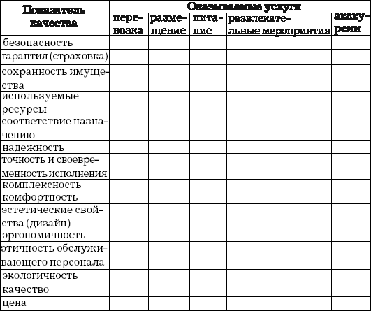 Для сбора информации о системе качества услуг потребителю этой услуги можно предложить заполнить следующую форму (см. табл. 5) или провести его опрос.