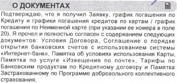 Поясню – подписывая заявку на телефон, вы даете согласие, что ознакомились и согласны еще с шестью документами. Причем, Условия Договора, например – это такая объемная бумага, состоящая из нескольких сотен пунктов, прочитать которые можно часа за два, не меньше. Поэтому, ради эксперимента, перед подписанием попросите у кредитного эксперта ознакомить вас с Условиями договора, Тарифами, Памяткой, Договором страхования и прочими документами, указанными в заявке. И потом достаньте заранее припасенный штангенциркуль и измерьте диаметр расширившихся глаз кредитного менеджера. Вполне возможно, что о половине этих документов он и слышать не слыхивал.