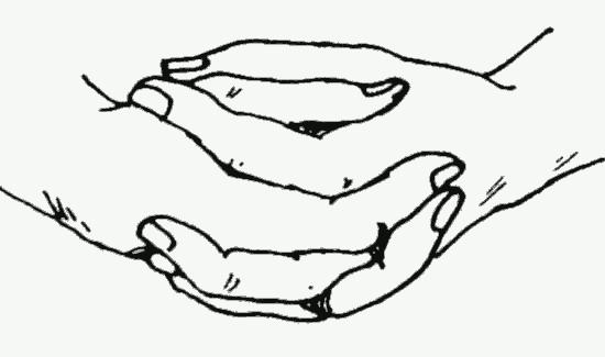 Практика «Мудра потока» 1. Сядьте на стул или на пол «по-турецки», спина выпрямлена, макушка вытянута.2. Сложите мудру, прикройте глаза (обе ладони сомкнуты в виде чаши; левая лежит в правой, большие пальцы касаются друг друга, ладони и руки образуют замкнутый