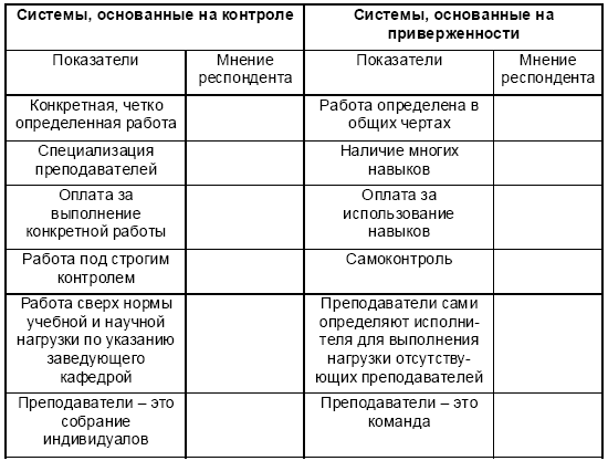 Анкета для определения состояния системы управления в ЗФИЭУП