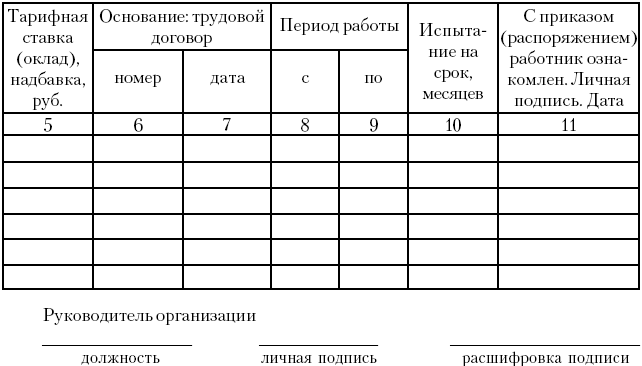 Сведения о приеме на работу сотрудника вносятся в его трудовую книжку со ссылкой на приказ, номер приказа, дату издания приказа (от какого числа, месяца, года). В трудовую книжку вносятся также сведения о переводе сотрудника на другую постоянную работу и увольнении с указанием на соответствующие приказы. Приказ о приеме на работу является основанием для начисления работнику заработной платы.