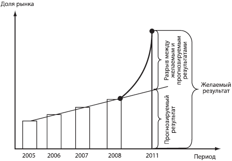 Рис. 1.21. Разрыв между тенденцией и целью (пример)