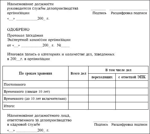 Индивидуальная номенклатура дел конкретной организации – это систематизированный перечень конкретных заголовков дел, которые предположительно будут заведены в делопроизводстве организации (или ее структурного подразделения) в определенном календарном году, с указанием сроков хранения, оформленный в установленном порядке.