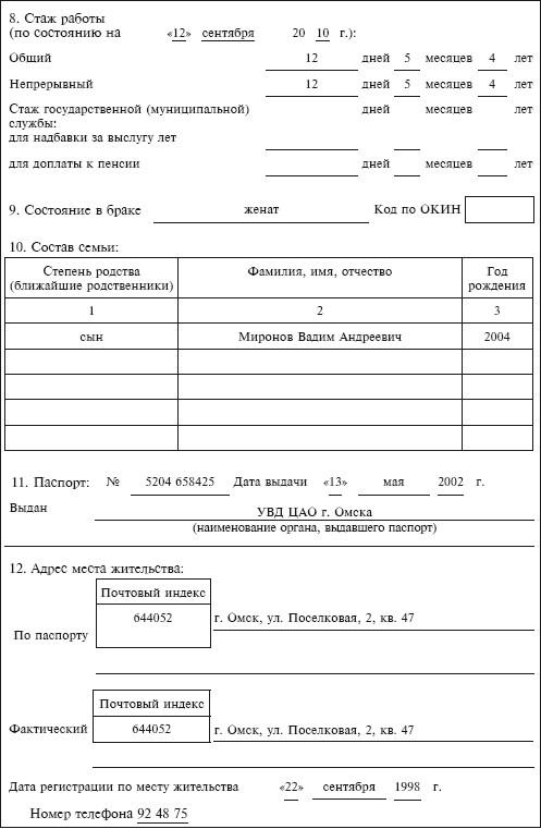 Для учета лиц, замещающих государственные (муниципальные) должности, на основании приказа (распоряжения) о приеме на работу работником кадровой службы заполняется личная карточка государственного (муниципального) служащего формы № Т-2ГС (МС), утвержденной постановлением Госкомстата РФ от 5 января 2004 г. № 1. Рассмотрим некоторые особенности заполнения этой формы.