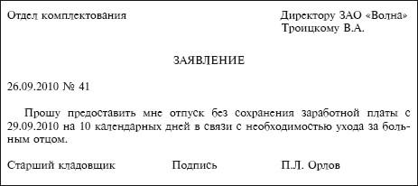 Приведем пример оформления личного заявления работника о предоставлении отпуска.