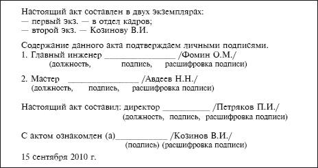 Эти акты обязательны при документировании процедуры наложения любого из дисциплинарных взысканий, перечисленных в ст. 193 ТК РФ (замечания, выговора или увольнения).