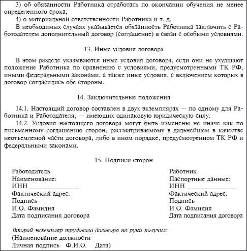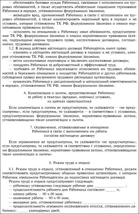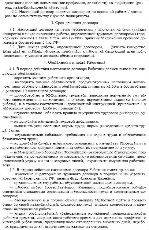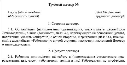 Приведем примерную форму трудового договора, заключаемого на общих основаниях.