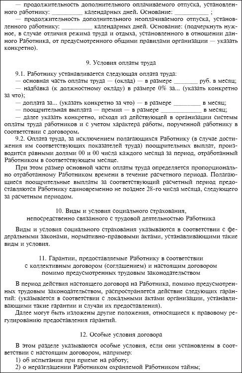 Отметим, что в настоящее время трудовым законодательством не предусмотрено какой-либо унифицированной формы трудового договора. Объясняется это прежде всего многообразием видов трудового договора, вследствие чего невозможно в какой-то типовой форме предусмотреть все его особенности (письмо Роструда от 9 августа 2007 г. № 3043-6-0).