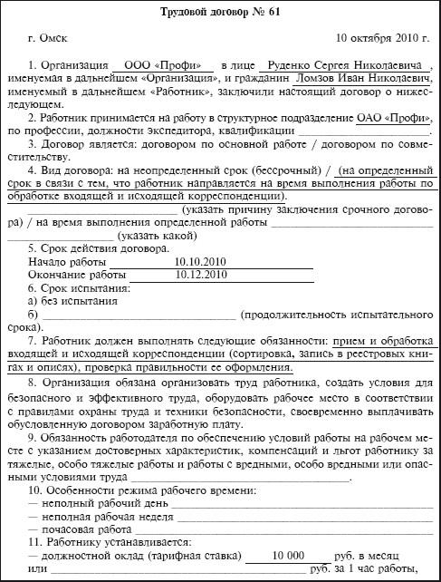 Приведем примерную форму срочного индивидуального трудового договора.
