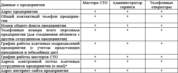 Информация о предприятия должна в актуальном виде присутствовать в наиболее популярных и распространенных (т. е. доступных клиентам) информационных источниках (справочных изданиях, тематических каталогах, справочно-информационных службах, тематических интернет-узлах). При этом оптимальным с точки зрения полноты информации является следующий набор данных: наименование предприятия в виде текста или логотипа, логотипы представляемых брендов, дилерский/сервисный статус, адрес, № телефона и факса, адрес сайта в интернете, адрес электронной почты. Фактический набор данных, подлежащий размещению в том или ином источнике информации устанавливается в соответствии с требованиями производителей и может быть меньшим в зависимости от ограничений, установленных источниками информации. Перечень источников информации при размещении данных определяется службой маркетинга управляющей предприятия и может быть скорректирован согласно требованиям производителей. Со временем некоторые данные предприятия могут меняться, поэтому информация, размещенная в справочно-информационных источниках, должна быть своевременно актуализирована. Желательно уведомлять клиентов и партнеров о таких изменениях в содержании новостных рассылок, пресс-релизов и т. д.