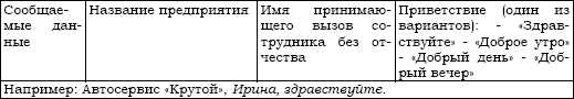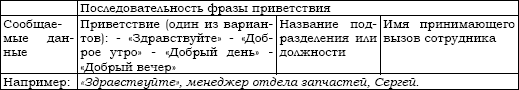 Разговор сотрудников, контактирующих в своей деятельности с клиентами по телефону, начинается с приветственной фразы, построенной по следующей схеме:
