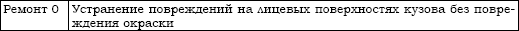 Из этой таблицы видно, что она предусматривает восстановление даже сильно деформированных деталей – это отголосок времен, когда запчасти стоили дороже работы. Теперь на нашем рынке, как и в Европе, работа ценится дороже запчастей, поэтому детали кузова главным образом заменяются. Для иномарок подобная система есть у AZT, но только для ремонта пластиковых деталей кузова. В ней предусмотрен легкий, сложный, средний ремонт.