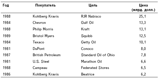 Таблица 2.8. Десять крупнейших поглощений, 1981–1989 гг.
