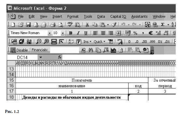 Одна из самых безобразных вещей, которые встречаются в оформлении, – использование десятков столбцов, суженных до миллиметра (в таком виде отчет предлагается, например, правовой базой «КонсультантПлюс»). Выглядит этот кошмар приблизительно так: