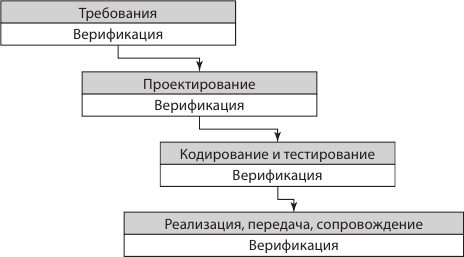 Естественно, большую систему сложно реализовать за один проход, хотя при правильной постановке задачи и хорошем подходе к документированию и проектированию это оказывается возможным, например, в проектах, которые реализуются по каскадной модели большей частью для госструктур, таких как министерства обороны (и в США, и в России). Другие модели жизненного цикла, о которых речь пойдет далее, предусматривают либо итерации с возвратным уточнением функциональности продукта, либо другой способ циклического прохождения по стадиям жизненного цикла. Эти модели в определенном смысле более легки с точки зрения дисциплины проекта и в ряде случаев не требуют полной функциональности, производства полного продукта с документацией в полном объеме на каждую стадию.