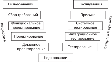 Рис. 3.3. V-модель жизненного цикла ПО на базе каскадной модели
