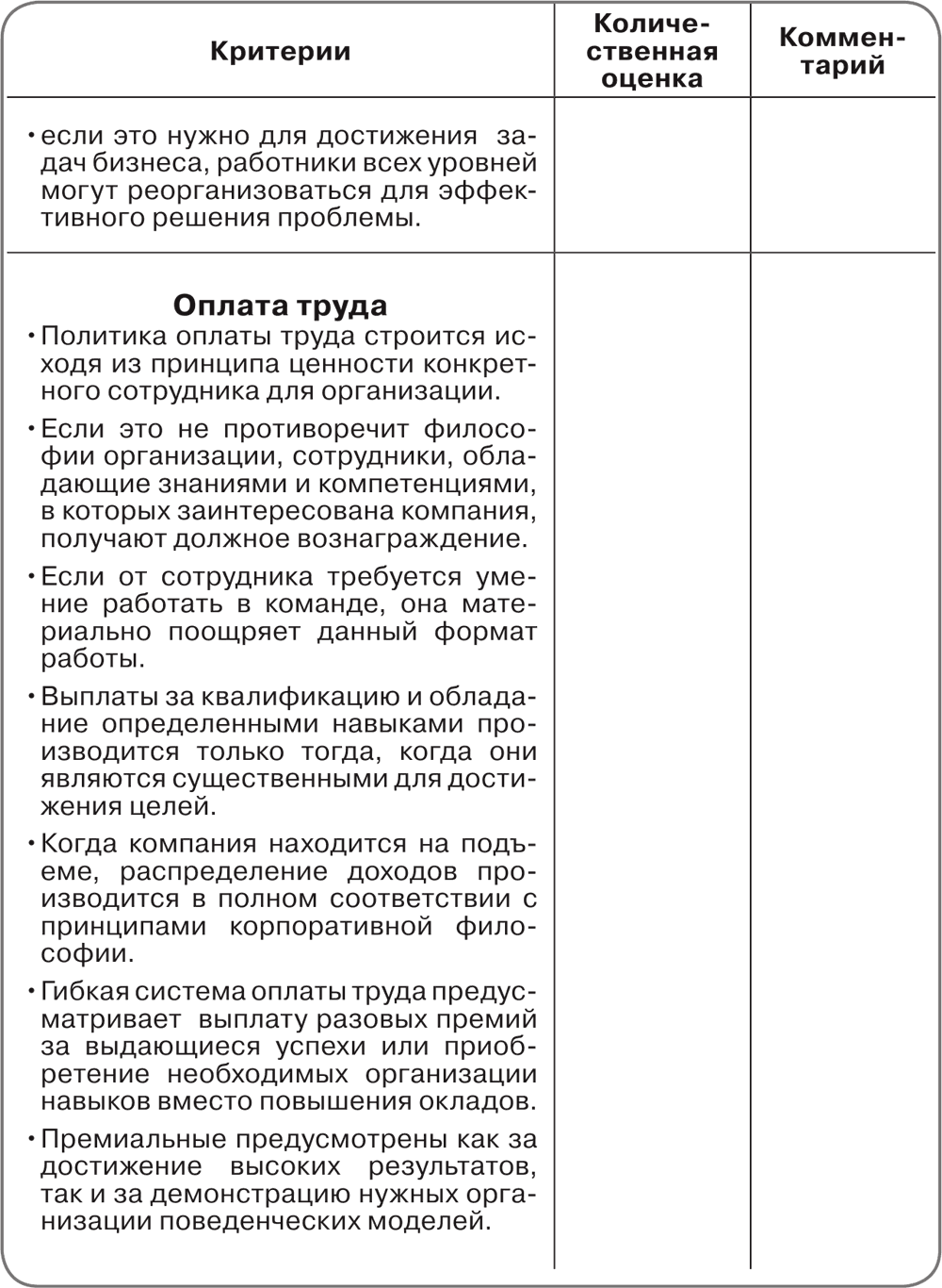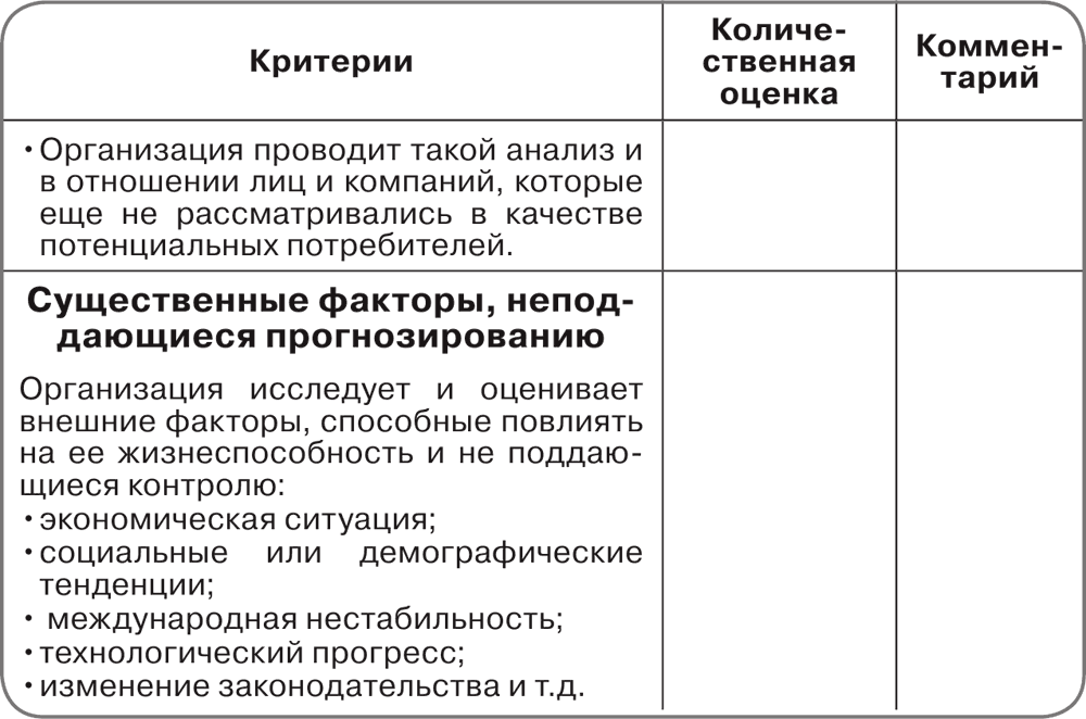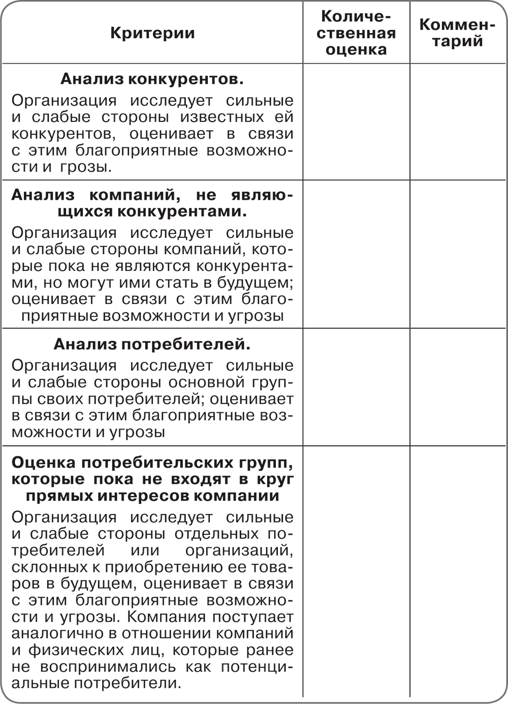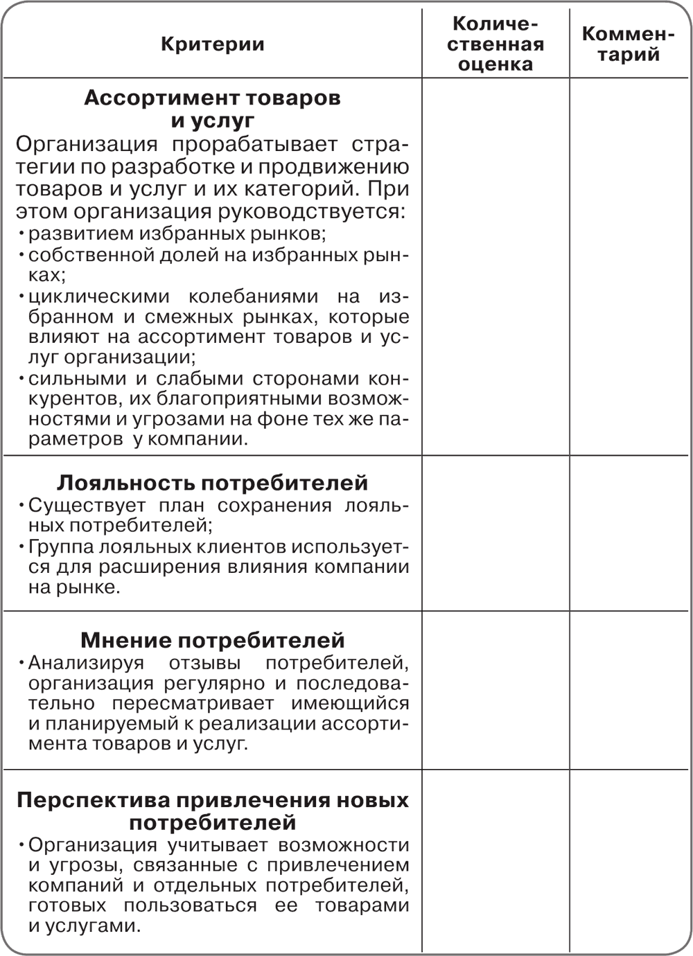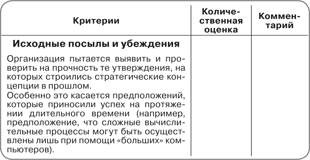 Перечисленные ниже критерии позволят оценить, насколько внятно в организации обозначены основные принципы и направления, требующие особого внимания, мобилизации ресурсов и защиты от конкурентов.