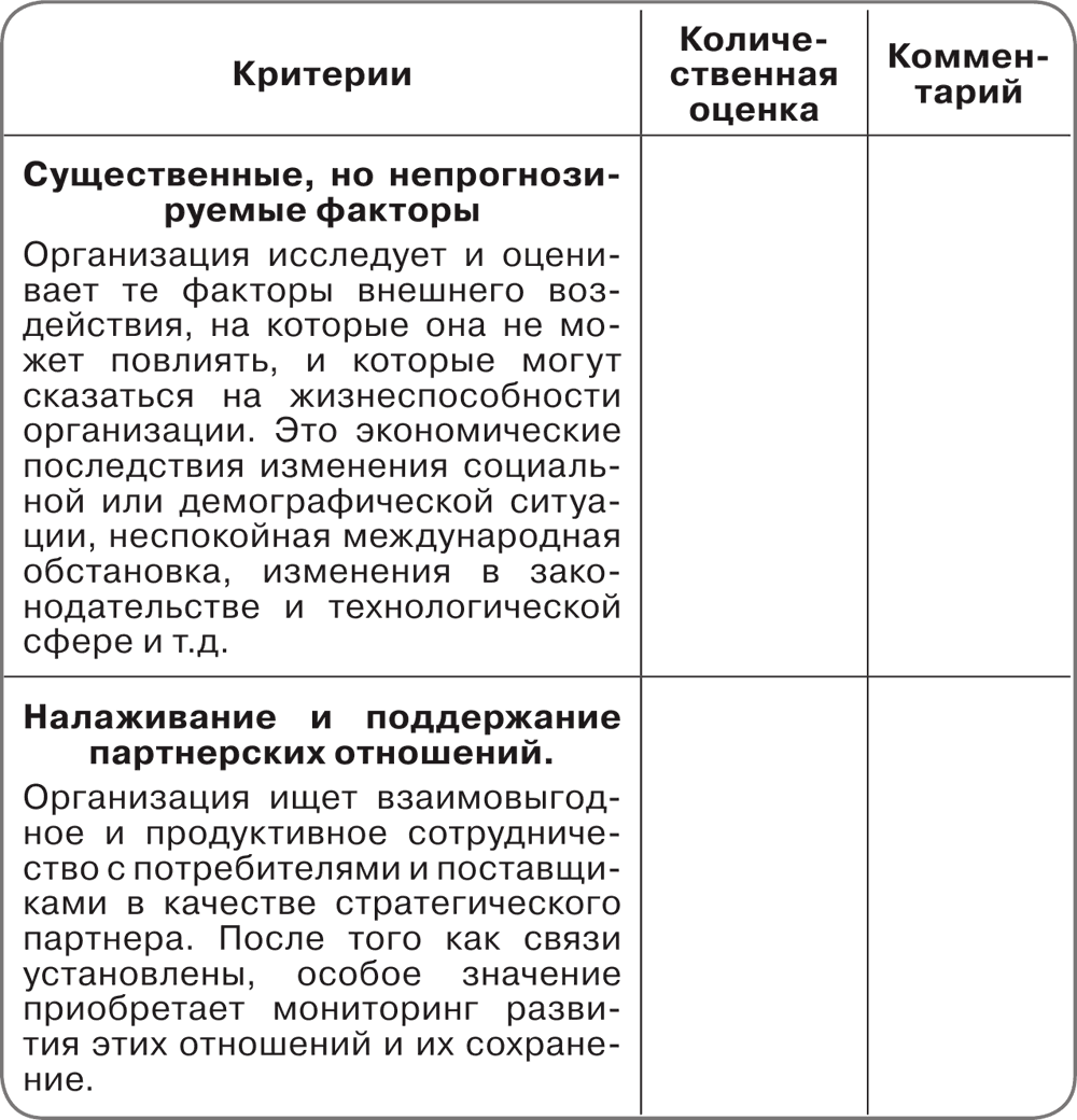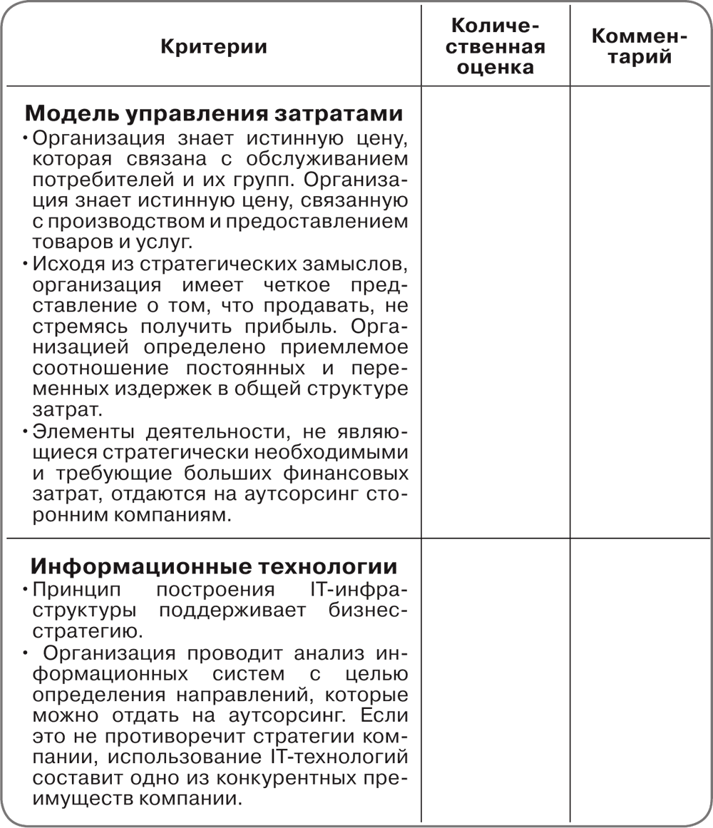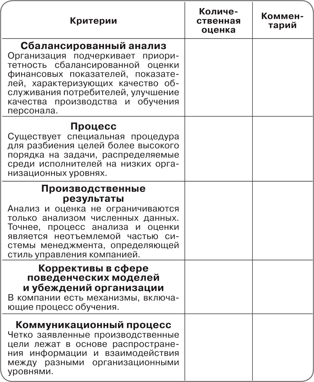 Используемые здесь критерии оценки можно применять при анализе эффективности компаний, работающих в самых разных отраслях – электронной промышленности, здравоохранения, фармацевтической и бумажной промышленности, сфере телекоммуникаций и создания программного обеспечения. Использование этих критериев возможно даже при оценке эффективности государственных учреждений.