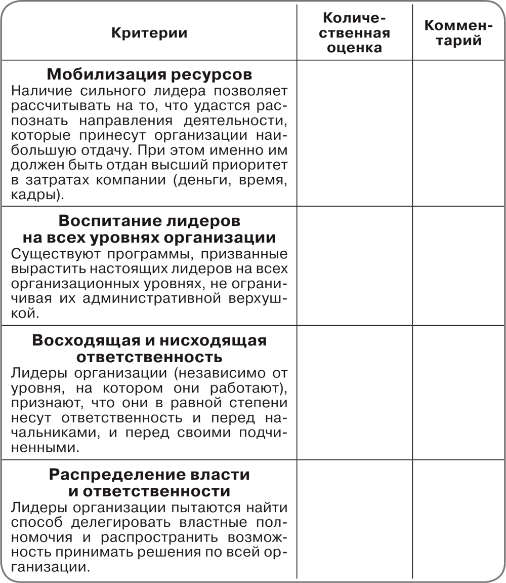 Перечисленные ниже параметры позволяют оценить то, насколько лидер способствует выживанию и процветанию организации в сложившихся условиях.