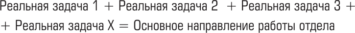 Технология следующая: Вы задаете себе вопрос: «какие отдельные задачи нужно выполнять, чтобы обеспечить основное направление деятельности отдела?» Для получения ответа Вы анализируете основное направление работы подразделения, разбиваете ее на составные элементы – задачи. Давайте рассмотрим этот механизм на примере отдела сбыта.