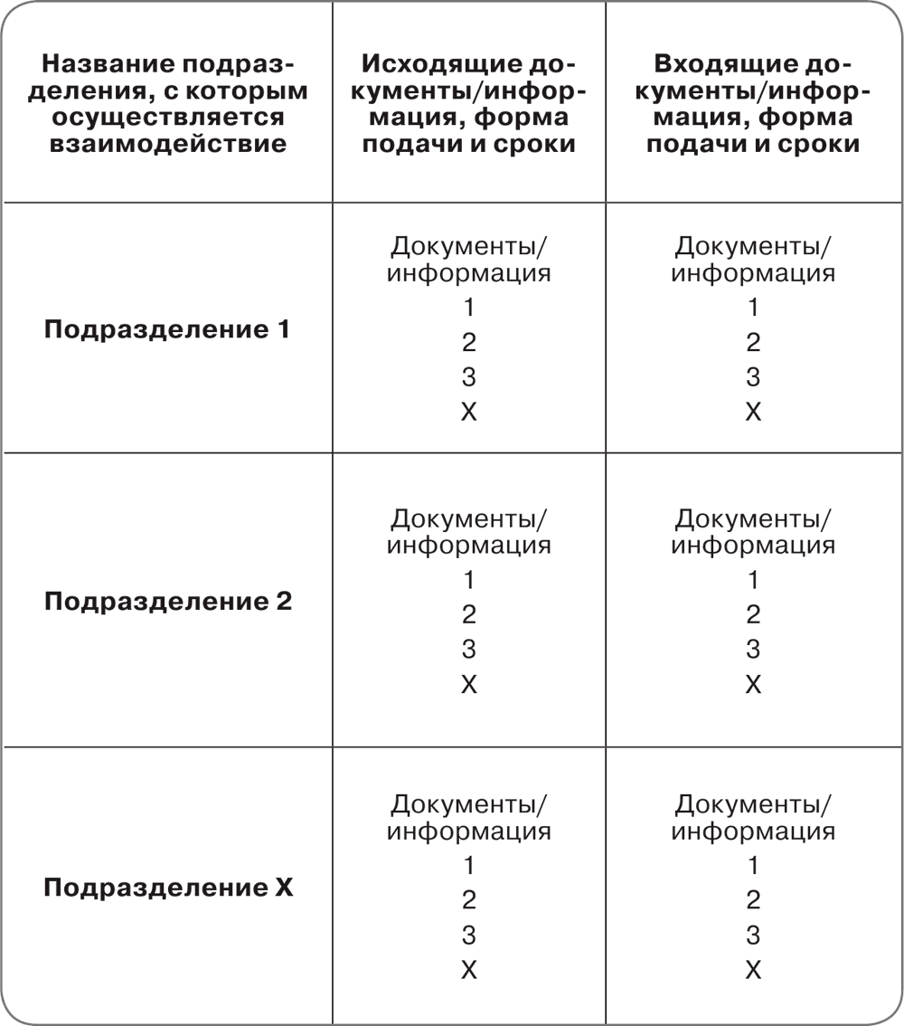 Таблица 3.2. Обмен информацией и документами (подразделение X)
