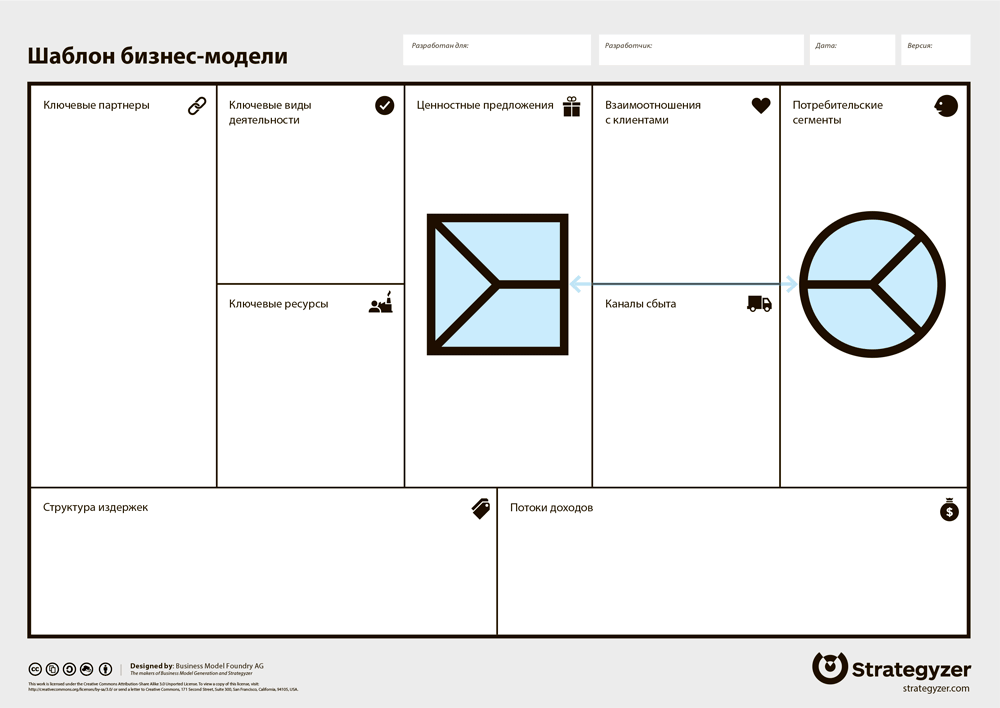 Скачайте подробные комментарии к шаблону бизнес-модели и шаблон бизнес-модели в pdf-формате.