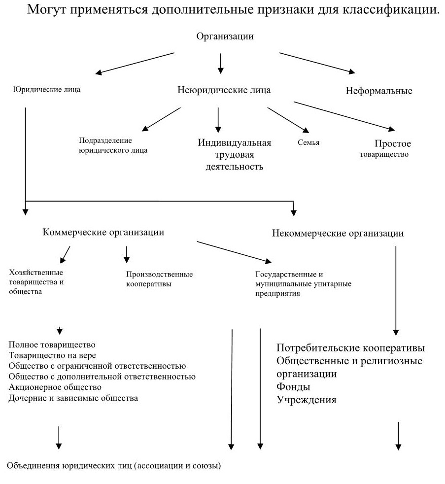 Хозяйственные организации (в дальнейшем организации) классифицируются по следующим признакам: