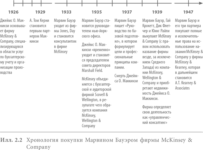 Почти одновременно с кончиной Маккинзи завершилась работа с самым крупным клиентом McKinsey, Wellington – компанией U.S. Steel, для которой проводился проект, и фирма перестала получать прибыль. Именно в это время Марвин возглавил группу, которая выкупила McKinsey из совместной с Wellington фирмы (илл. 2.2).