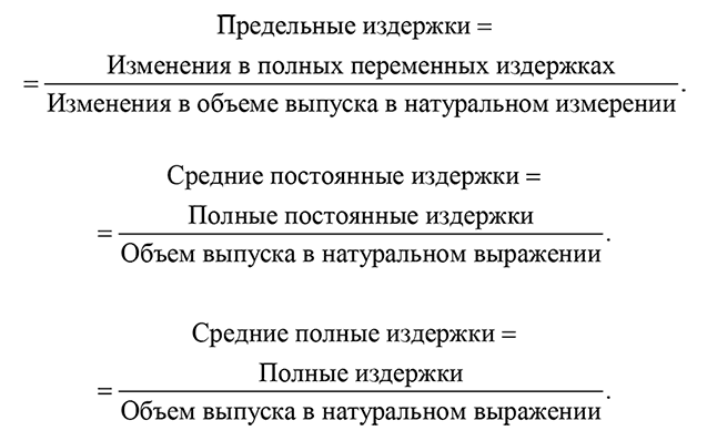 Если же предельные издержки производства меньше средних, то производство следующей единицы продукции понизит средние издержки, т. е. будет «работать» на повышение конкурентоспособности продукции. Если же издержки на эту следующую единицу продукции выше средних, то ее производство повысит уровень средних издержек. Данные выводы справедливы и при оценке соотношения предельных издержек и средними полными издержками. Для упрощения понимания и использования выводов на практике приведем формулы расчета показателей, характеризующих предельные издержки: