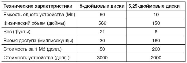 Сравнительные характеристики 8- и 5,25-дюймовых магнитных дисковых накопителей