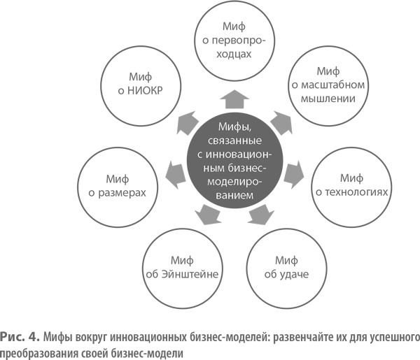 В общем и целом, инновационное бизнес-моделирование до сих пор остается мифическим заданием, пугающим многих менеджеров. Мифы, окружающие создание инновационных бизнес-моделей, до сих пор передаются руководителями из уст в уста (см. также рис. 4).