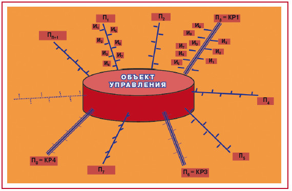 Некоторые из показателей позволяют оценить объект управления по сути и наиболее глубоко. Их мы называем критериями, или критериальными показателями. На рис. 6.1 такими критериями являются ПЗ = КР1, П5 = КР2, П8 = КРЗ И П12 = КР4.