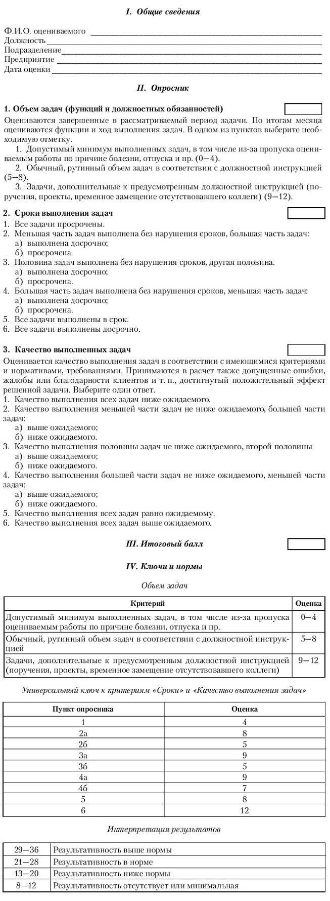 Пример методики оценки результативности на основе KPI. Опросник для периодической оценки работника любого уровня и профиля
