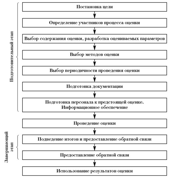 Алгоритм оценки труда руководителей и специалистов. Оценка персонала представляет собой сложную и длительную процедуру, состоящую из трех этапов: подготовка к оценке, непосредственно ее проведение и подведение итогов (рис. 2).
