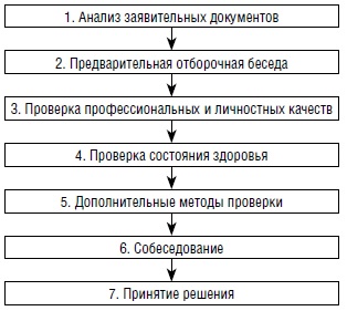 На каждом этапе выявляются и отсеиваются кандидаты, не соответствующие предъявляемым требованиям.