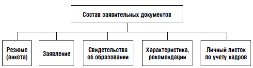 В состав пакета заявительных документов могут входить резюме, анкета, рекомендации, документы, подтверждающие уровень образования и стаж кандидата (см. рис. 4).