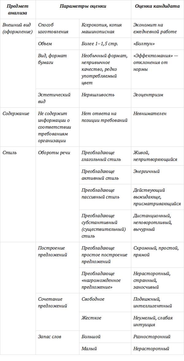 Кроме информации, содержащейся в резюме, целесообразно оценить и его оформление. Как отмечают специалисты, четкость и логичность структуры резюме может свидетельствовать о хороших аналитических навыках и способностях кандидата, точное и последовательное описание функциональных обязанностей – о глубине и системности понимания предмета труда; язык и стиль изложения информации поможет сформировать представление об общей культуре, умении письменно выражать мысли.