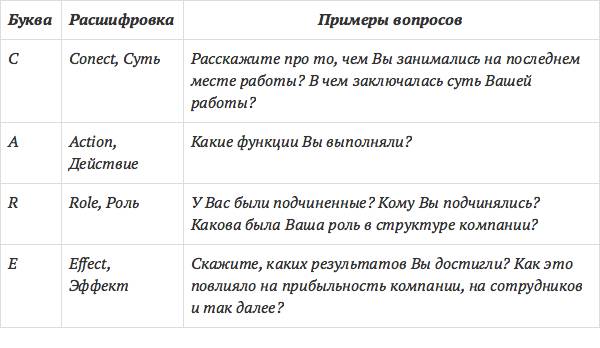 Для полноценной оценки кандидата при биографическом собеседовании может быть использована технология CARE.