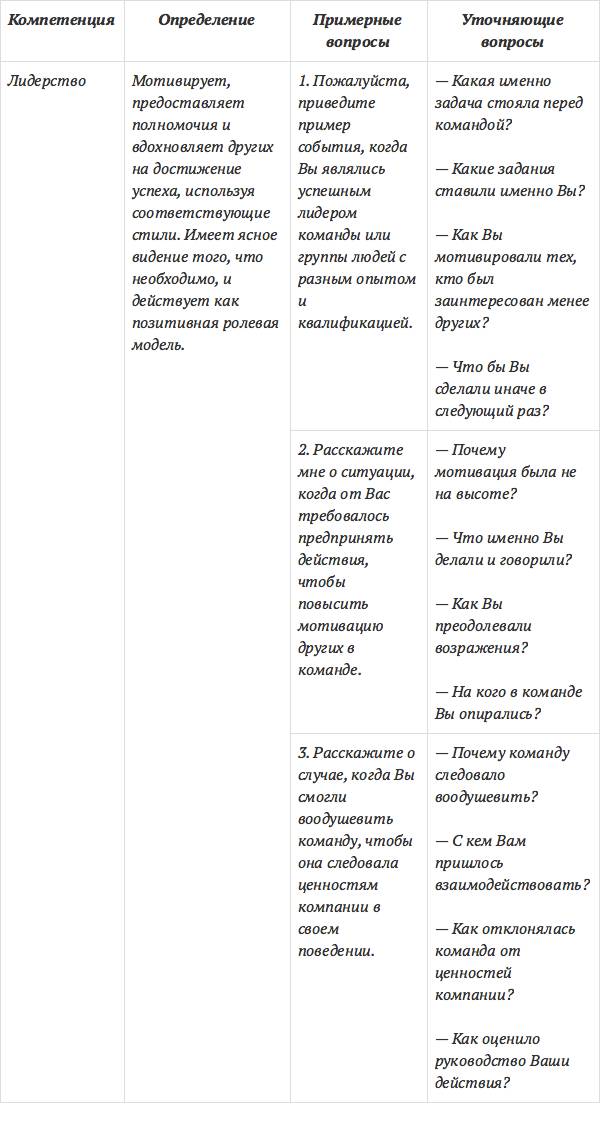Источник: Боуз Р. Интервью по компетенциям: методы проведения интервью / пер. с англ. М., 2009.