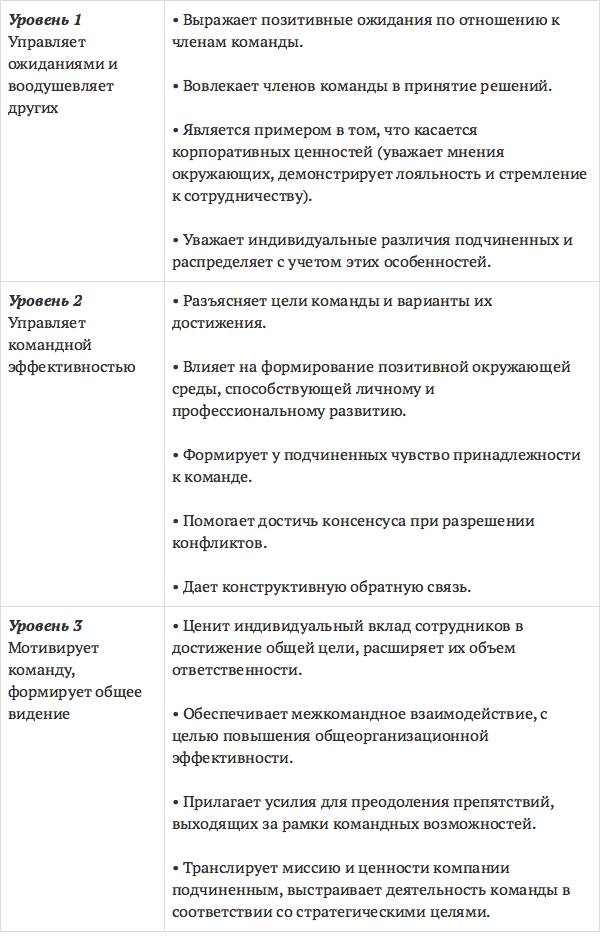 Уровни развития компетенции «Лидерство»