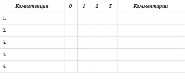 После проведения собеседования целесообразно заполнить специальную форму, в которой каждая компетенция имеет определенную оценку.