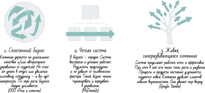 Далее мы рассмотрим, как от спонтанного бизнеса (бардака) перейти на уровень системы[27]. От управления через «Вашу мать!» к качественной стабильной работе, результаты которой предсказуемы и встроены в саму систему. Именно это важно для большинства компаний на постсоветском пространстве.