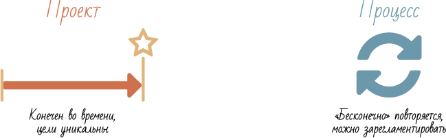Если процессы раз за разом повторяются, то проекты каждый раз в той или иной степени уникальны и ограничены во времени. По определению, проект – это набор мероприятий по достижению уникальной цели в условиях заданных ограничений: сроки, бюджет, люди и т. д. (рис. 21).