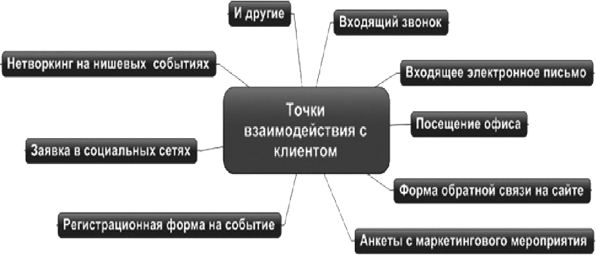 Рис. 1. Точки взаимодействия с клиентом для сбора контактов