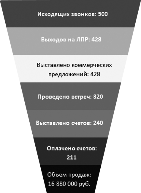 Если вы ведете воронку продаж, то понимаете, сколько клиентов в месяц вы привлекаете, сколько холодных звонков необходимо сделать, чтобы было заключено 10 сделок и т. д. Например, если оценивать приведенный выше пример, то для осуществления 2 продаж, необходимо сделать 10 звонков. Основываясь на замерах, вы сможете составлять более точные прогнозы и планы, а также управлять продажами через количество действий.
