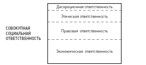 Своеобразной вершиной развития комплексного подхода, во многом ставшей завершающим этапом формирования первой позиции в дискуссии о сущности КСО, основанной на признании определяющей роли общественного договора, оказалась модель А. Керолла, подвергнутая целому ряду уточняющих трансформаций. Еще в конце 1970-х гг. А. Кероллом была предложена трактовка социальной ответственности бизнеса как «соответствия экономическим, правовым, этическим и дискреционным ожиданиям, предъявляемым обществом организации в данный период времени» [Caroll, 1979, p. 500]. Соответственно, А. Керолл выделил четыре типа корпоративной социальной ответственности: экономическую, правовую, этическую и дискреционную (рис. 2). Дискреционную ответственность А. Керолл соотнес со сферой, в которой общество еще не сформировало сколь-либо ясных ожиданий и которая предполагает индивидуальный добровольный выбор менеджера.[20] Особо важно, что, по мнению автора, эти четыре типа «не являются взаимоисключающими, равно как не образуют континуума с экономическими интересами на одном полюсе и социальными – на другом» [Caroll, 1979, p. 449]. Иными словами, они не являются ни коммулятивными, ни аддитивными, а скорее соотнесены между собой в порядке исторической эволюции. «Хотя все эти типы ответственности уже существуют одновременно в бизнес-организациях, – отмечал А. Керолл, – история бизнеса говорит о более раннем внимании к экономическим и правовым аспектам и более позднем – к аспектам этическим и дискреционным. Более того, любая принятая ответственность или действие бизнеса могут иметь встроенные экономические, правовые, этические и дискреционные мотивы» [Caroll, 1979, p. 500]. Данная модель, по мнению автора, носит управленческий характер, поскольку «может быть использована для облегчения идентификации причин конкретных действий бизнеса, а также для привлечения внимания к этическим и дискреционным условиям, зачастую забываемым менеджерами» [Caroll, 1979, p. 501].