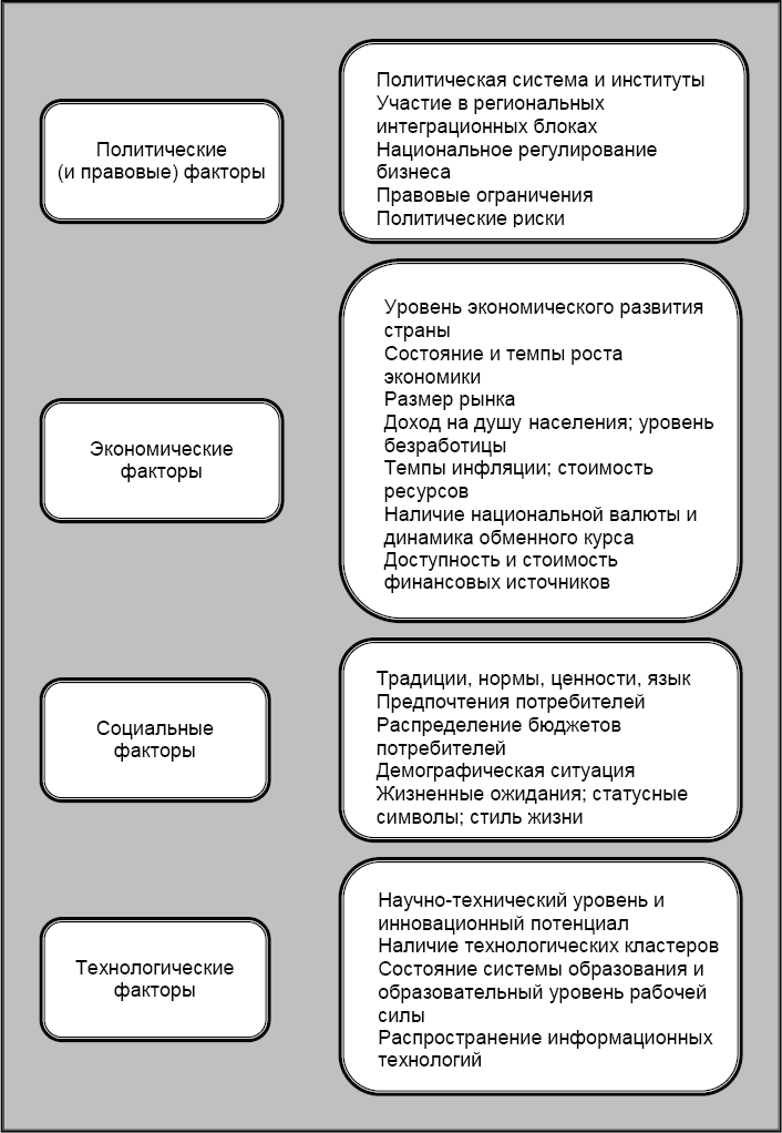 Рис. 2.2. Основные факторы макросреды, анализируемые менеджерами международных компаний