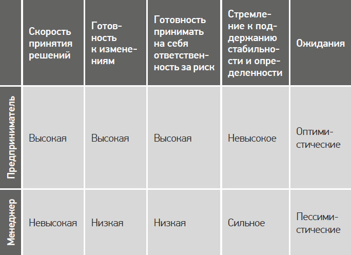 Различия между предпринимателями и менеджерами