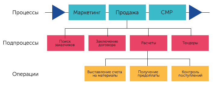 Рис. 2. Декомпозиция процессов: процессы, подпроцессы, операции