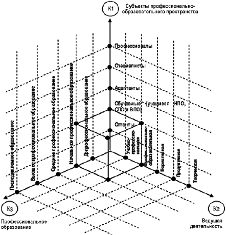 Исходя из указанных позиций, Э. Э. Сыманюк и М. Г. Синякова выстраивают развивающееся профессионально-образовательное пространство в рамках трех объективных, саморазвивающихся и воспроизводящихся векторов-координат: